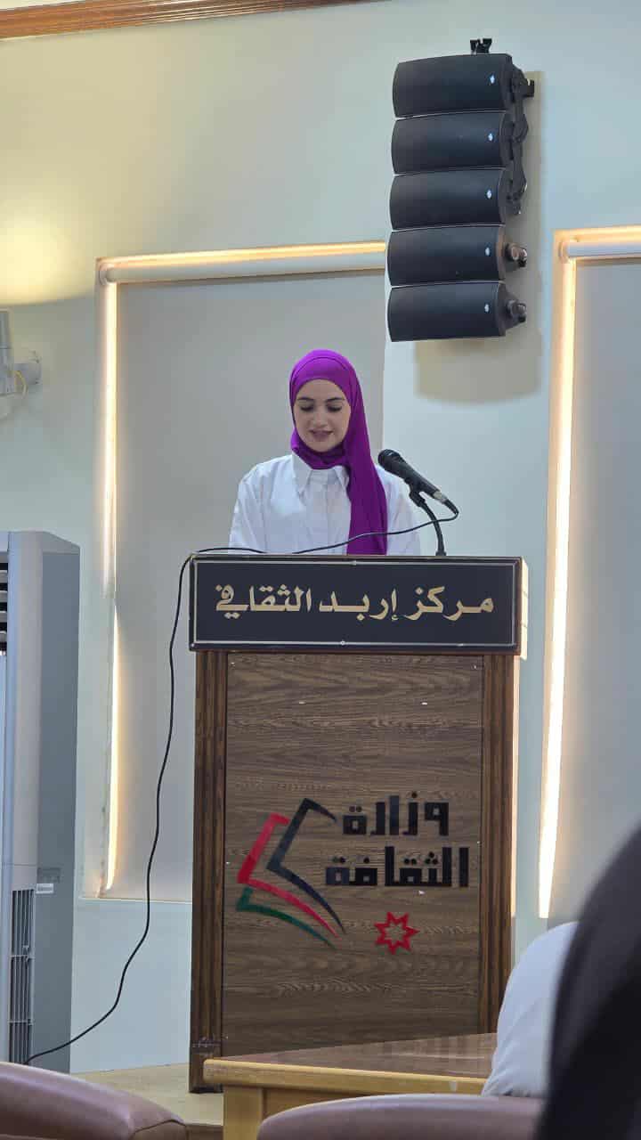 عمون - من محمد الأصغر محاسنة - استضاف مركز اربد الثقافي مساء امس الكاتبة نور عويدات لحفل اشهار روايتها " مئة وسبعة " وادار مفردات الحفل يسرَى مقدادي، التي رحّبت بالحضور وقدّمت نبذة عن الرواية، تحدّثت فيها عن رحلة الكتابة، وعن الدوافع الإنسانية والفكرية التي شكّلت جوهر روايتها، مشيرةً إلى أن "مئة وسبعة" ليست مجرد عمل سردي، بل تجربة تسعى إلى مساءلة الوجود الإنساني بأسئلته العميقة، وتغوص في طبقات النفس والذاكرة والعلاقات البشرية. |