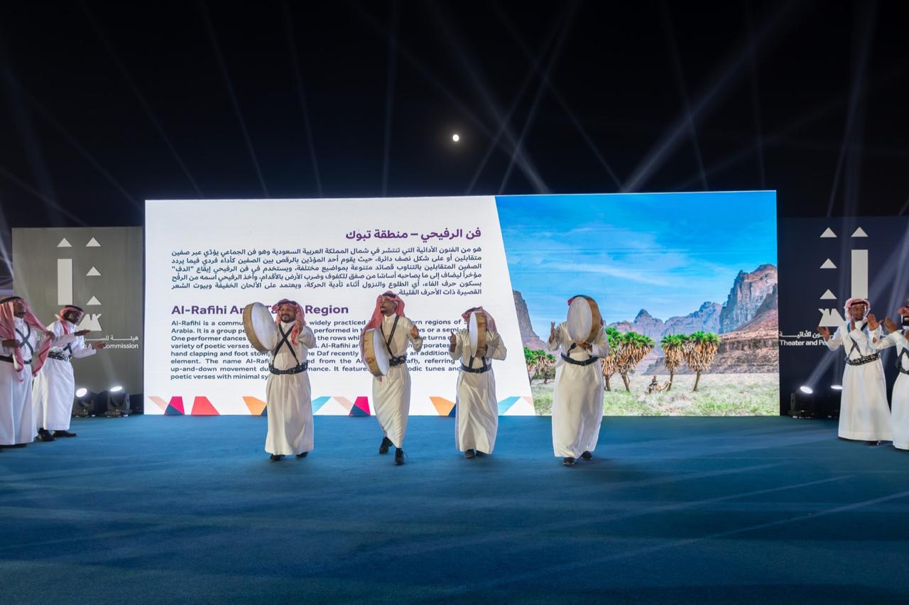 ويتضمّن البرنامج اليومي ثلاثة عروض رئيسة تبدأ بالعرض السعودي الذي يقدّم لوحاتٍ من خمسة فنونٍ شعبية تمثّل تنوّع الموروث الثقافي للمملكة، وهي: الخطوة، السامري، والليوه، والخبيتي، والرفيحي، في مشهد يجسّد الهوية الوطنية وثراء التراث المحلي.