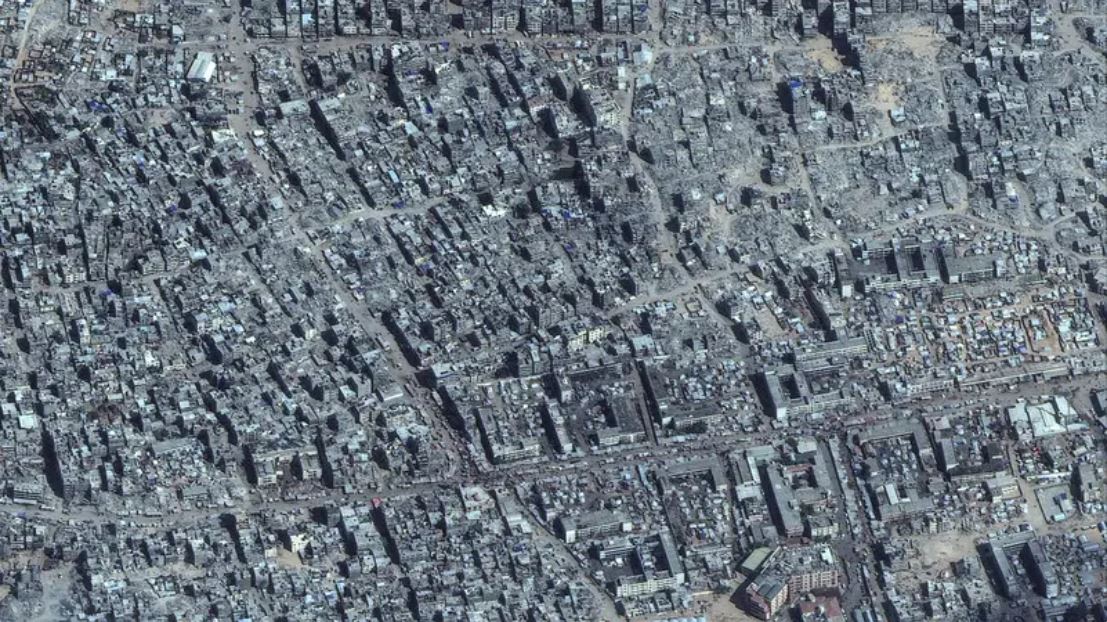 إذ أظهرت صور جوية حجم الدمار الهائل في خان يونس جنوباً، وغيرها من المناطق شمالاً أيضاً.