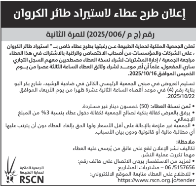 عطاءات صادرة عن الجمعية الملكية لحماية الطبيعة