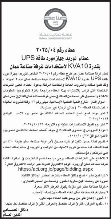 عطاء صادر عن غرفة صناعة عمان