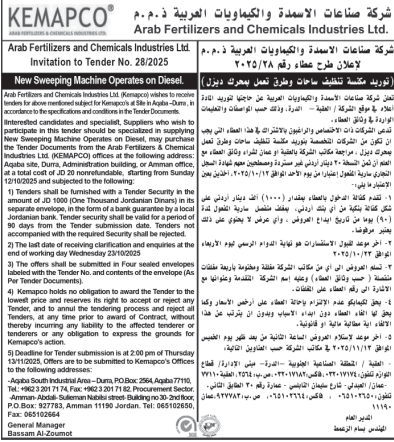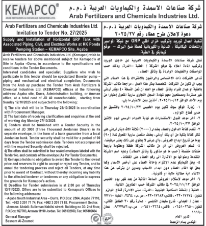 عطاءات صادرة عن شركة صناعة الاسمدة والكيماويات العربية