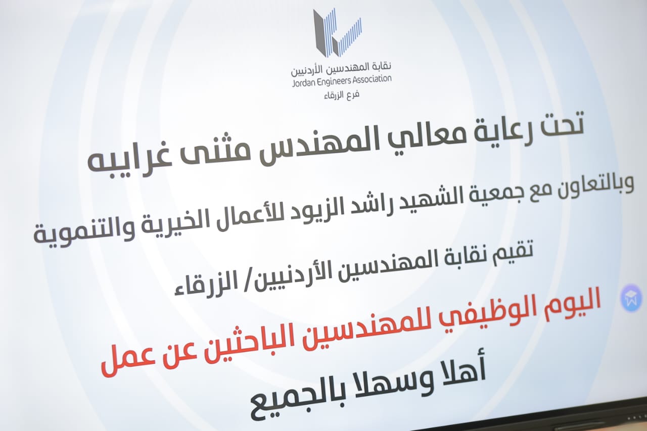في بداية اللقاء رحب م.جمال ابو عيد رئيس نقابة المهندسين فرع الزرقاء بإقامة هذا الملتقى الكبير خدمة للشباب بهدف تطوير مهاراتهم وقدراتهم ومساعدتهم للحصول على الوظائف في المستقبل القريب مؤكدا على الدور الذي تبذله النقابة خدمة لمختلف القطاعات، الصناعية والتجارية والتعليمية والهندسية والتجارية.
