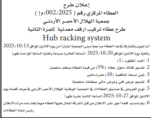 عطاء صادر عن جمعية الهلال الاحمر الاردني