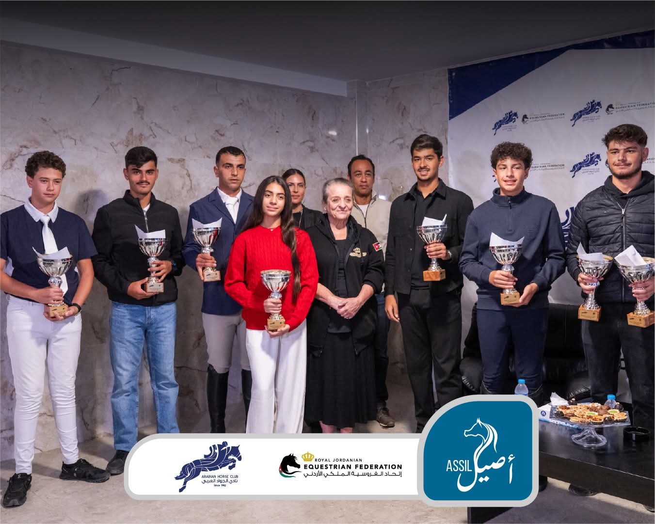 وشهد الحفل تكريم الفائزين حسب الترتيب التراكمي على الفئات المختلفة: 145 سم: عبدالله الحوراني، 125 و135 سم: رامي شاهين، 115 سم: حمزة الفتياني، 100 سم: باسم إبراهيم، 90 سم: فرح بهاء الخطيب، 80 سم: سند معاذ، 60 سم: عبيدة المرتزق.