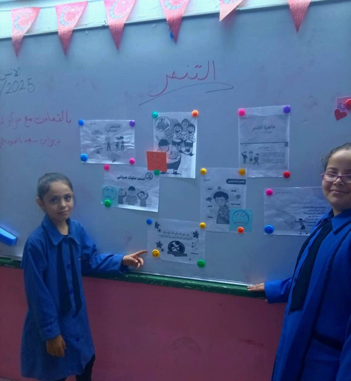 عمون - نظّم مركز شابات دير أبي سعيد بالتعاون مع مدرسة الأشرفية الأساسية المختلطه ندوة توعوية بعنوان التنمّر وأثره على الفرد والمجتمع"، لطالبات المدرسة بمشاركة 25 طالبة ضمن الفئة العمرية 12 عاما بعنوان " قدّمتها المرشدة شيماء بني دومي. |
