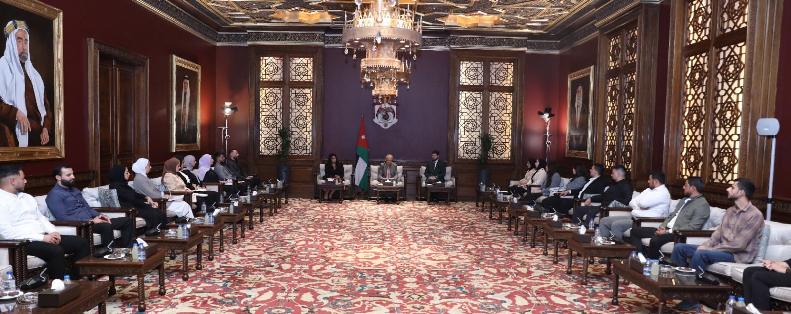 جاء ذلك خلال لقاء العيسوي، اليوم الثلاثاء، وفدًا شبابيًا من فريق "قيادتنا هاشمية وهويتنا أردنية"، ووفدًا شبابيًا من محافظة عجلون، في لقاءين منفصلين بالديوان الملكي الهاشمي.