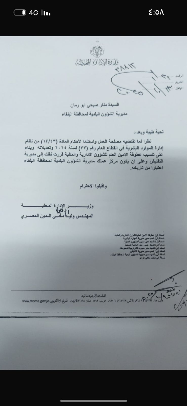 عمون - تم بعون الله تعيين السيدة منار صبحي ابو رمان مفتشاً إدارياً ومالياً في وزارة الإدارة المحلية لمحافظة البلقاء. |