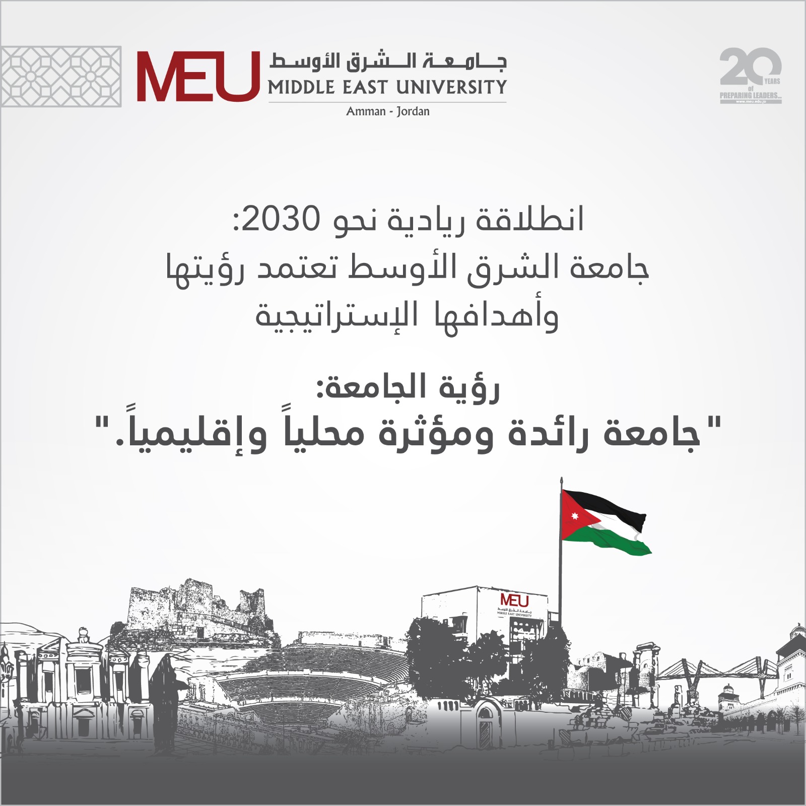 نحو 2030 .. جامعة الشرق الأوسط تعتمد رؤيتها وأهدافها الاستراتيجية الجديدة