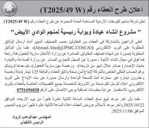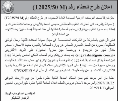 عطاءات صادرة عن شركة مناجم الفوسفات