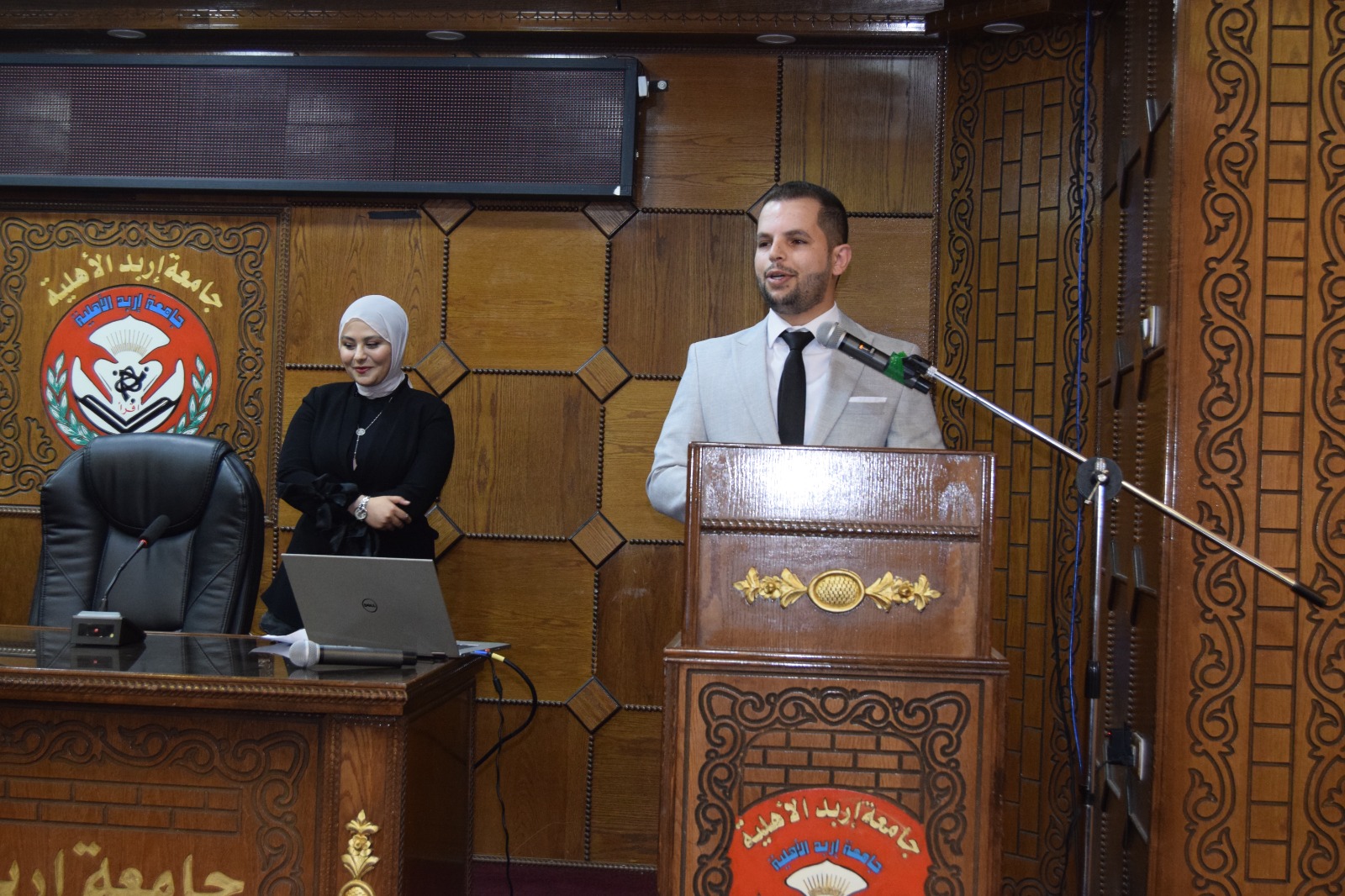 أما المهندس علاء الجمحاوي مدير عام أكاديمية التكنولوجيا العالمية، فقد عبّر في كلمته عن امتنانه لجامعة إربد الأهلية على دعمها ورعايتها المستمرة، قائلاً: "أتقدم بجزيل الشكر والتقدير إلى جامعة إربد الأهلية ممثلة برئاستها الكريمة، هذا الصرح العلمي العريق الذي لم يتردد يومًا في فتح أبوابه أمام كل من يحمل الطموح والرغبة في التعلم، فأتاحت الفرصة للعديد من الطلبة للالتحاق ببرامجها التعليمية والتدريبية ليكملوا مسيرتهم بثقة وكفاءة. لقد كانت الجامعة وما زالت منارة للعلم، ورافدًا للفرص المتكافئة للجميع."