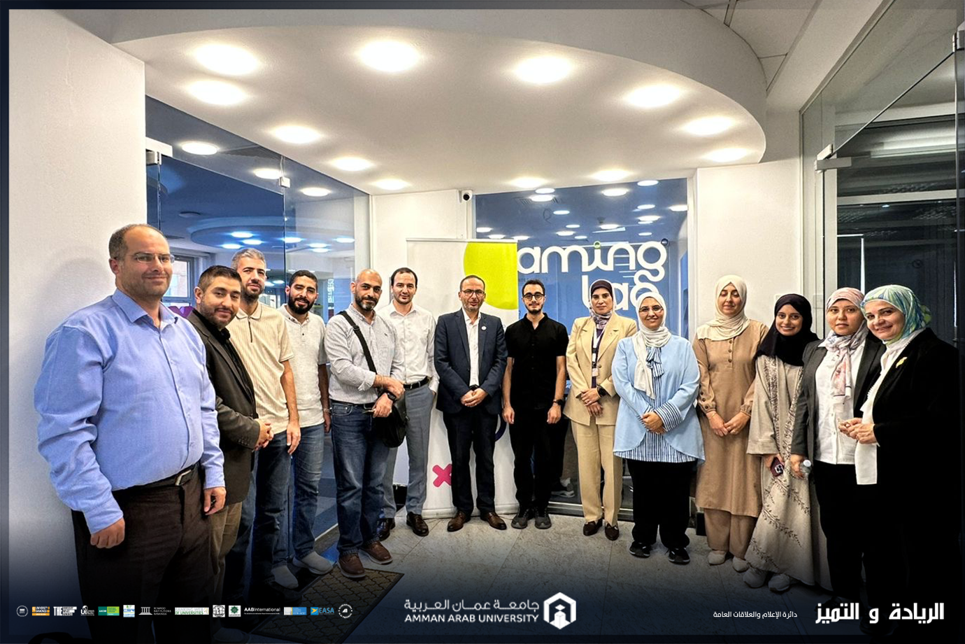 عمون - في إطار التعاون المشترك بين جامعة عمان العربية ومختبر الألعاب الأردني وبتنسيق من مركز الإبداع والابتكار وريادة الأعمال وبالتعاون مع كلية تكنولوجيا المعلومات في جامعة عمان العربية، عقد مختبر الالعاب الاردني في مقرة في مجمع الملك حسين للأعمال ورشة تدريبية متخصصة لعدد من أعضاء هيئة التدريس من كلية تكنولوجيا المعلومات ومركز الابداع والابتكار وريادة الاعمال في جامعة عمان العربية في مجال: "Game Development ToT,using Minecraft Education" وذلك ضمن جهود الجامعة لتعزيز مهارات التعليم الرقمي والابتكار لدى اعضاء الهيئة التدريسية.