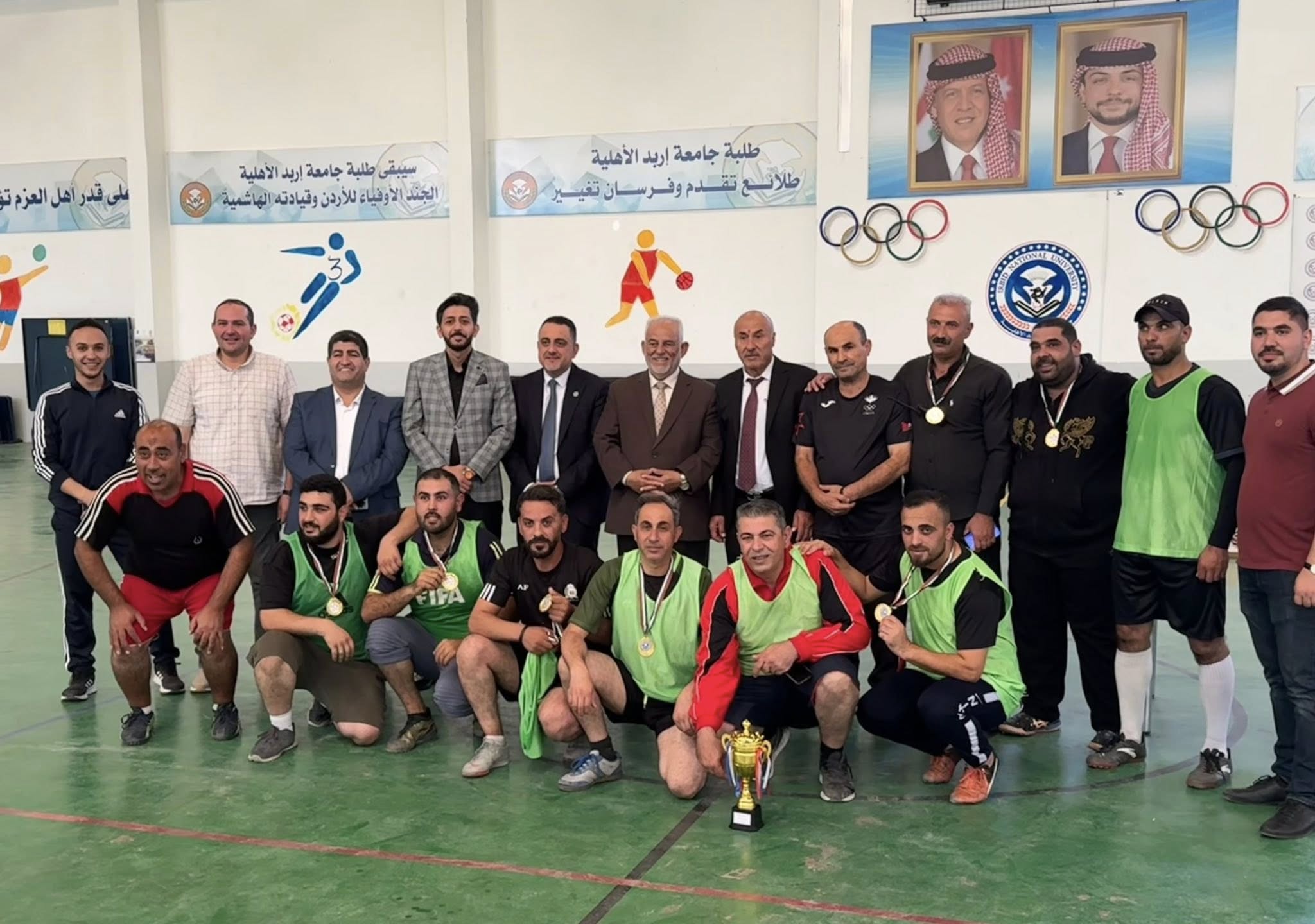 وفي ختام الفعالية، قام الدكتور فايز العتوم بتسليم كأس البطولة والميداليات التقديرية للفرق المشاركة، مشيدًا بالتنظيم المتميز وجهود دائرة النشاط الرياضي، ومعبّرًا عن شكره للسيد كمال المومني مساعد العميد ومدير الدائرة على جهوده في إنجاح هذا النشاط الذي يجسّد قيم التعاون والعمل الجماعي في رحاب الجامعة.