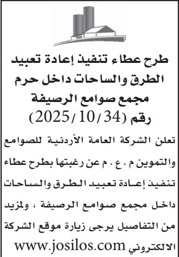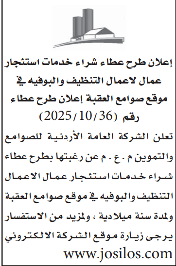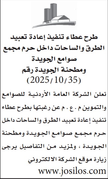 عطاءات صادرة عن الشركة العامة الاردنية للصوامع والتموين