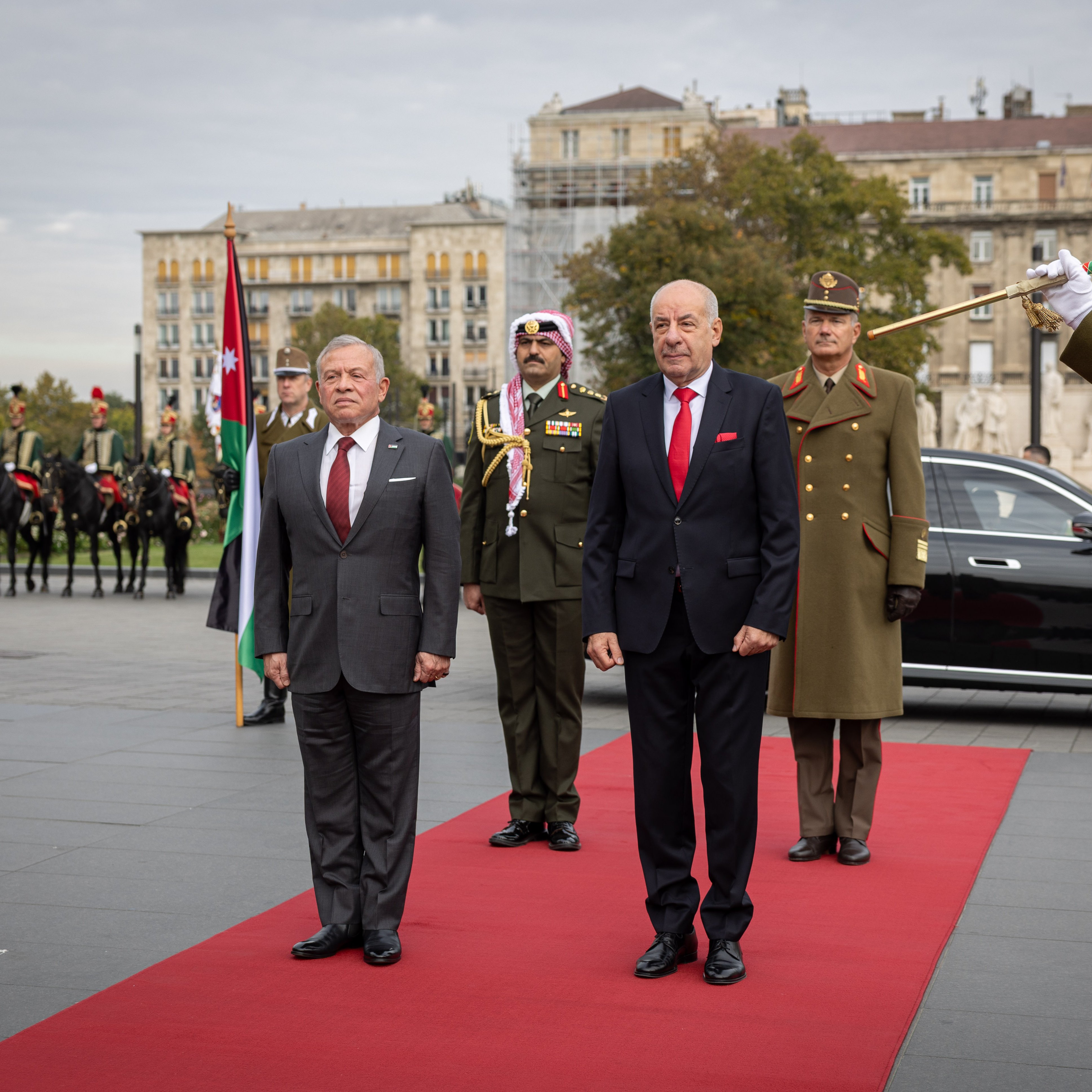 وجرت لجلالة الملك مراسم استقبال رسمية بميدان كوسوث في بودابست.