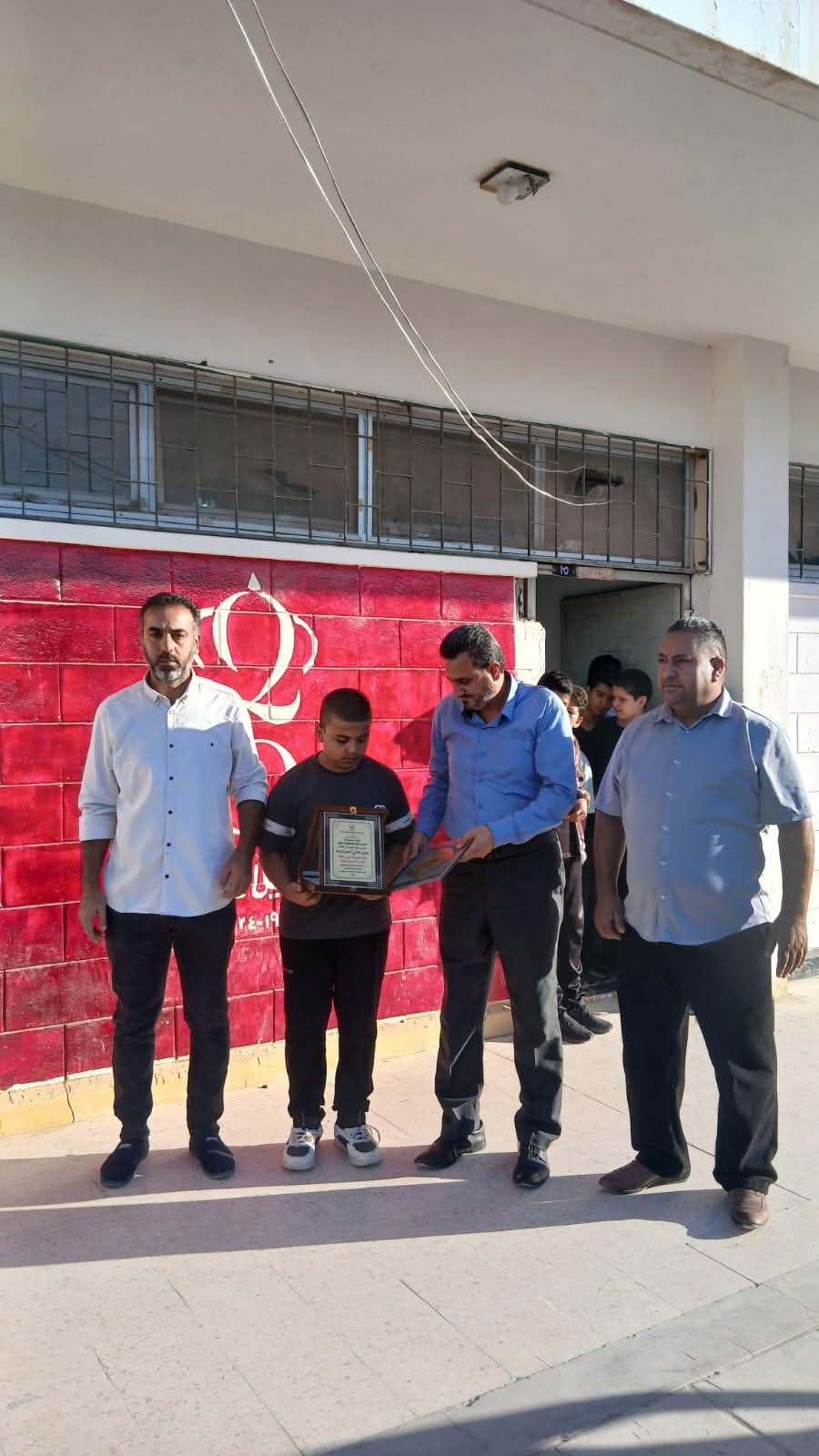 العدوان تكرم طالباً حافظاً لكتاب الله في شهداء الكرامة الثانوية للبنين