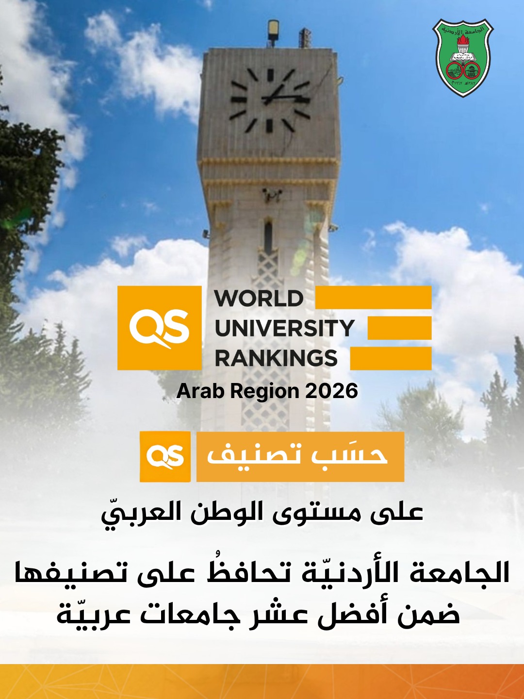 الأردنيّة الأولى محليًّا وضمن أفضل عشر جامعات عربيّة في تصنيف QS Arab 2026