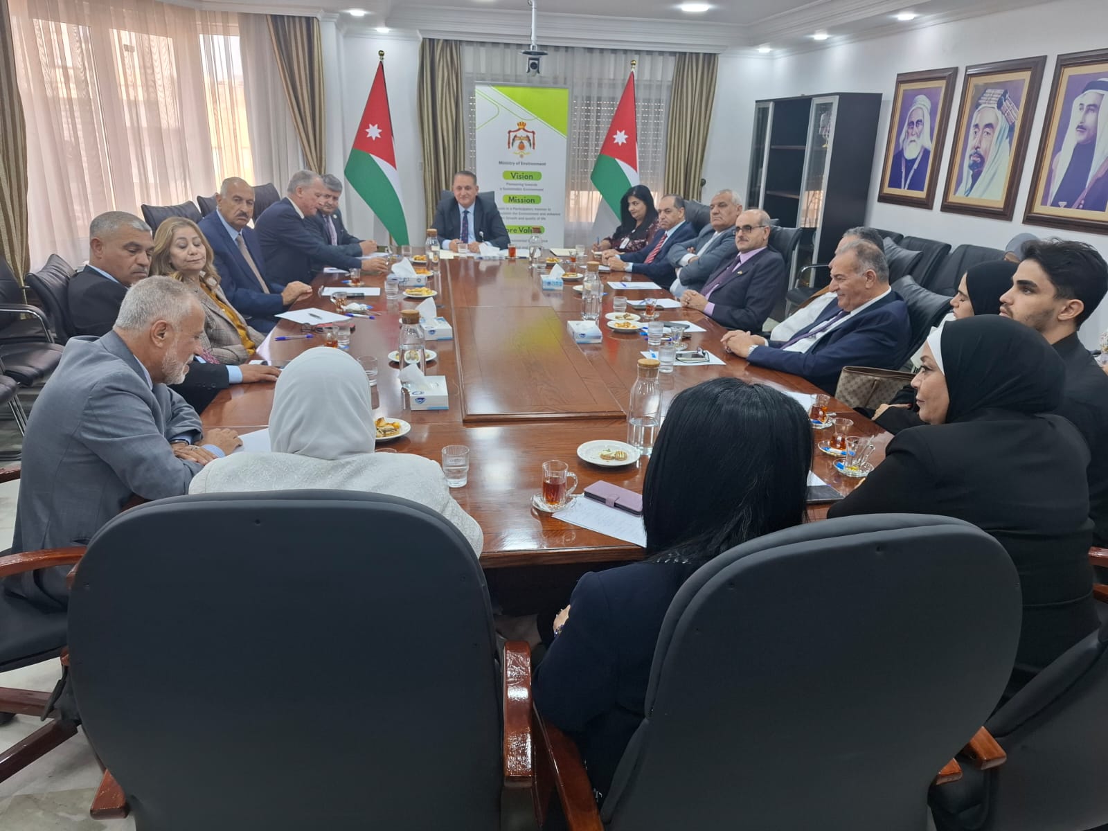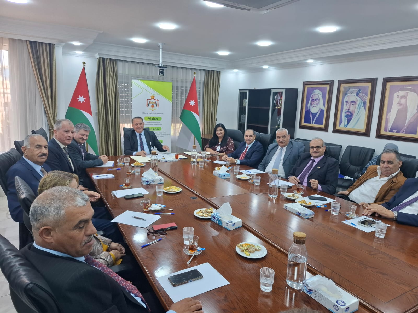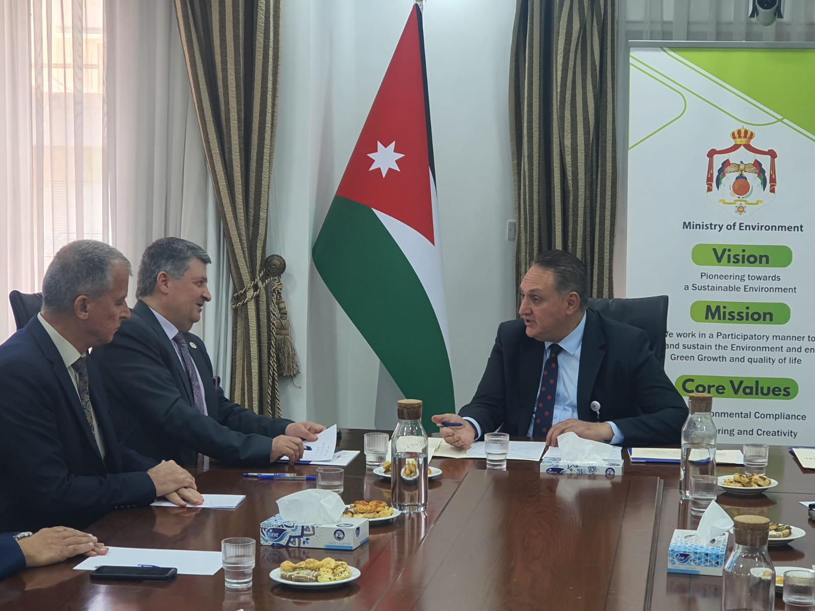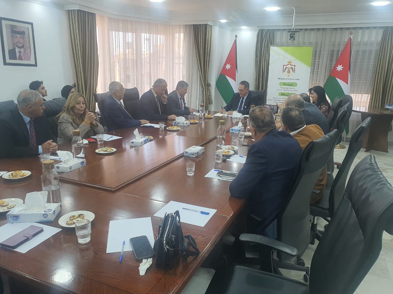 عمون - التقى وزير البيئة الدكتور أيمن سليمان وفداَ يمثل جمعية عَون الثقافية الوطنية برئاسة رئيس الهيئة الإدارية أسعد ابراهيم ناجي العزام وعدد من أعضاء الجمعية،في إطار حرص الوزارة على تعزيز التعاون مع مؤسسات المجتمع المدني ودعم المبادرات البيئية،إضافة إلى تعزيز مشاركة الشباب في العمل البيئي والمجتمعي.