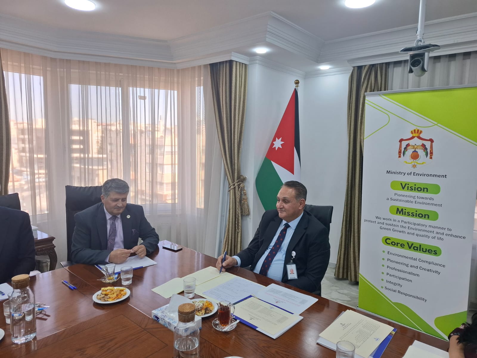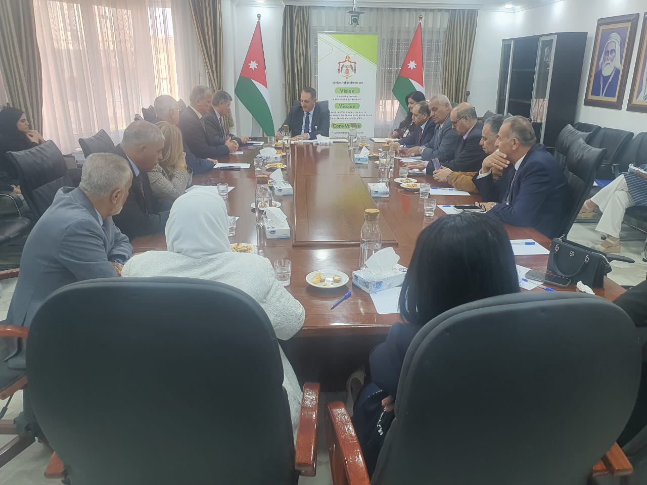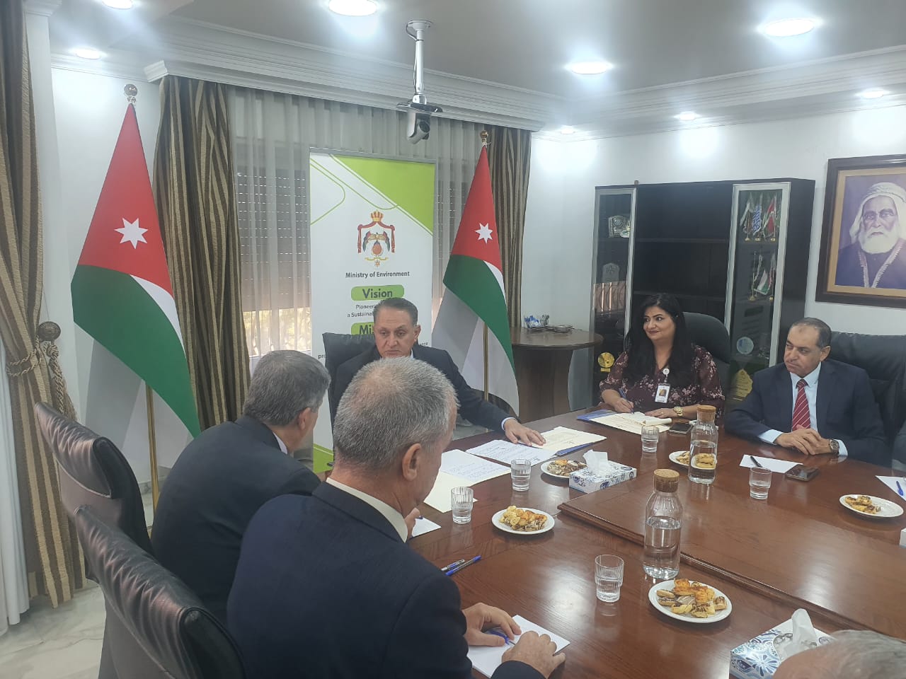 عمون - التقى وزير البيئة الدكتور أيمن سليمان وفداَ يمثل جمعية عَون الثقافية الوطنية برئاسة رئيس الهيئة الإدارية أسعد ابراهيم ناجي العزام وعدد من أعضاء الجمعية،في إطار حرص الوزارة على تعزيز التعاون مع مؤسسات المجتمع المدني ودعم المبادرات البيئية،إضافة إلى تعزيز مشاركة الشباب في العمل البيئي والمجتمعي.