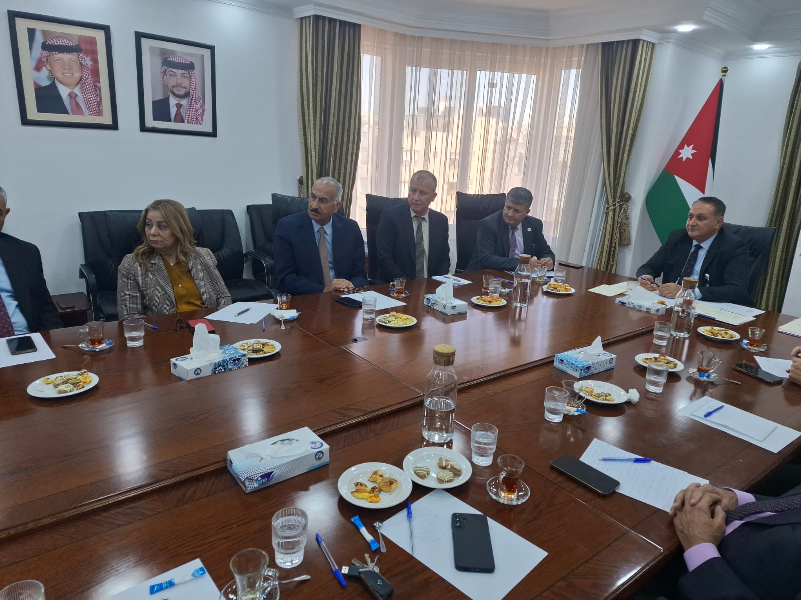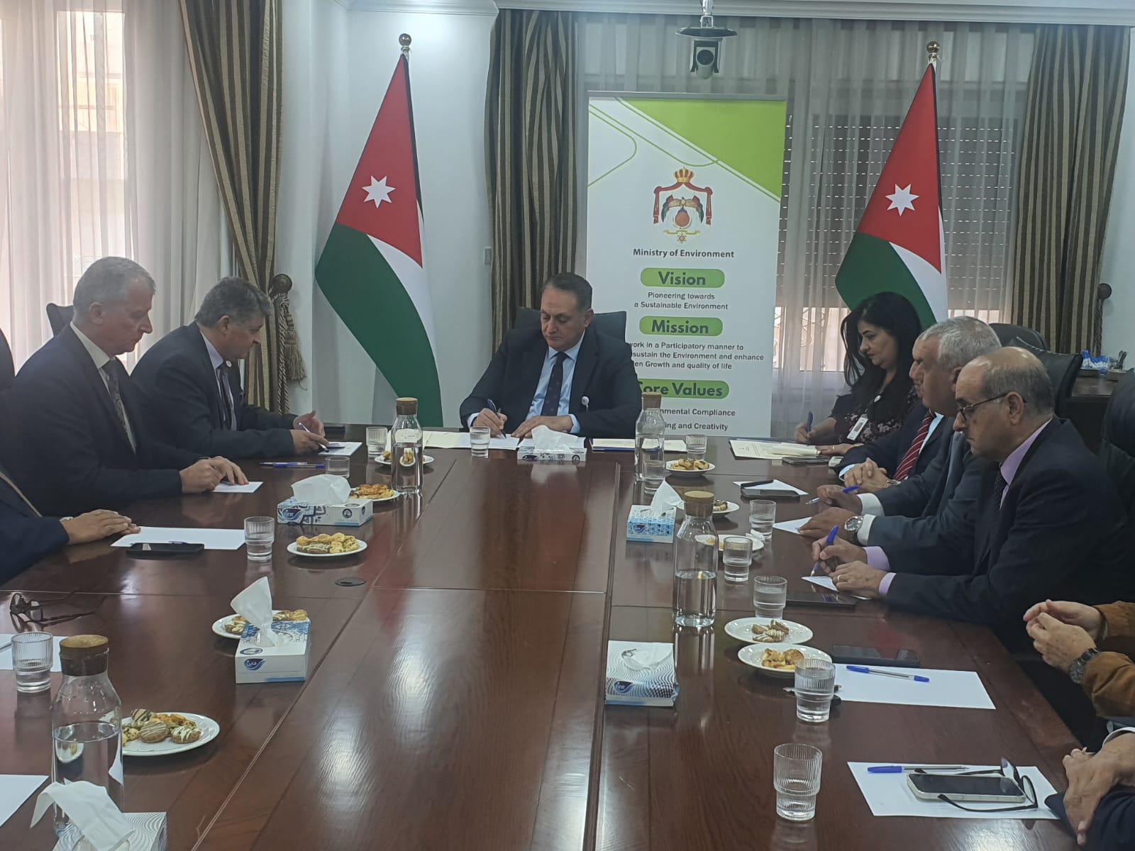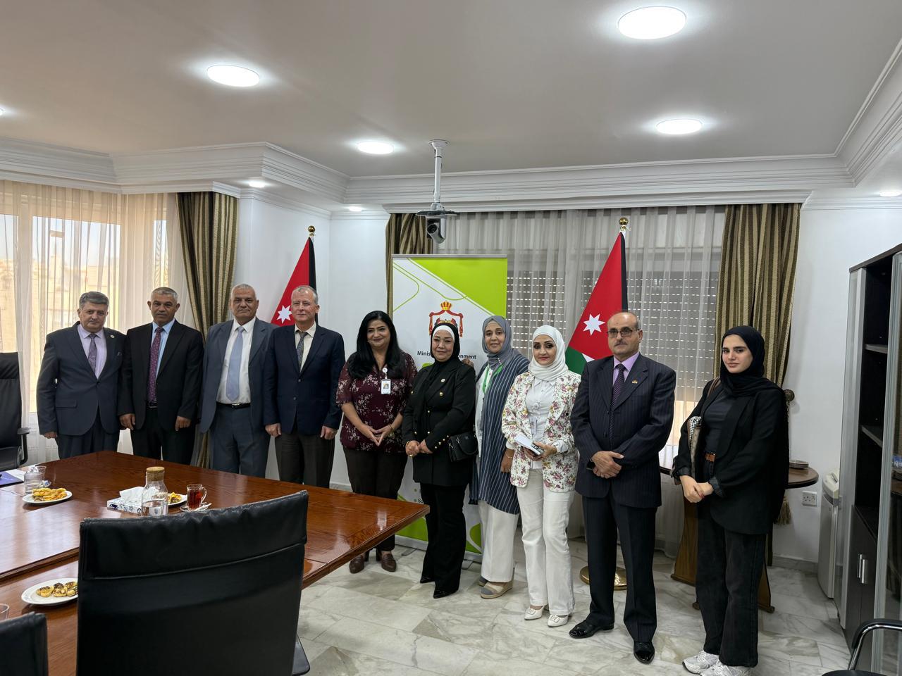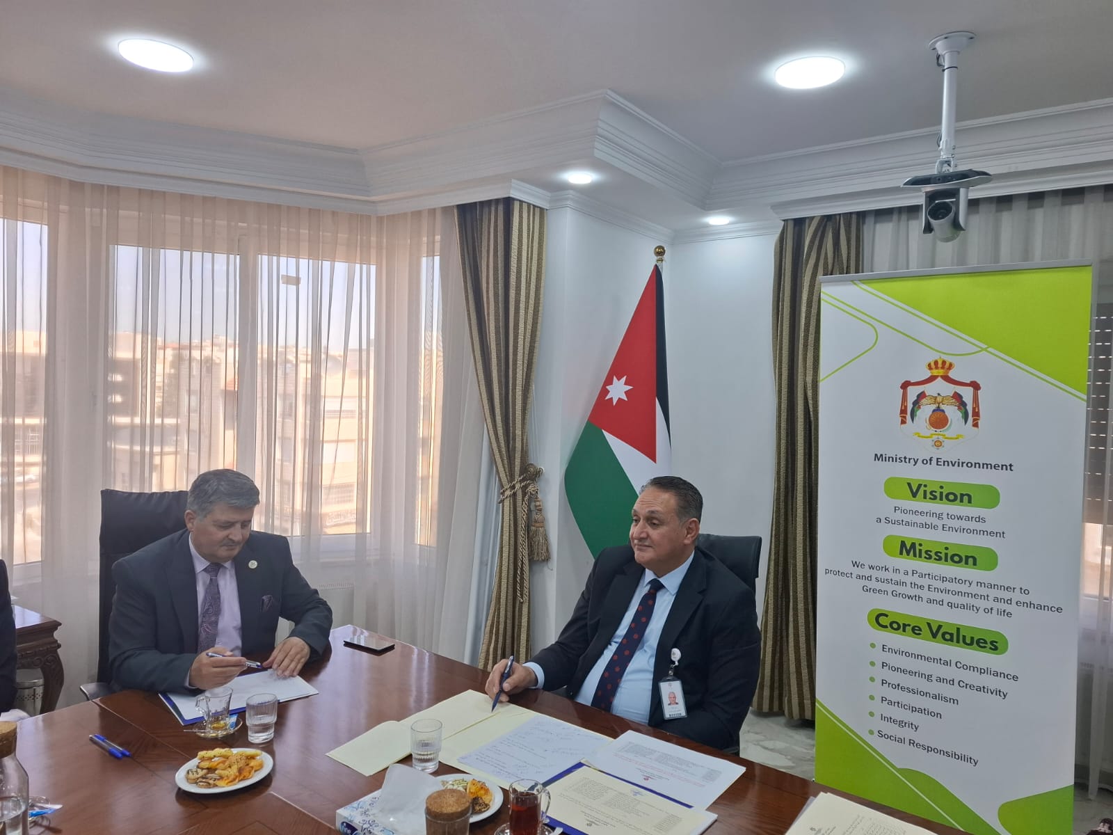 عمون - التقى وزير البيئة الدكتور أيمن سليمان وفداَ يمثل جمعية عَون الثقافية الوطنية برئاسة رئيس الهيئة الإدارية أسعد ابراهيم ناجي العزام وعدد من أعضاء الجمعية،في إطار حرص الوزارة على تعزيز التعاون مع مؤسسات المجتمع المدني ودعم المبادرات البيئية،إضافة إلى تعزيز مشاركة الشباب في العمل البيئي والمجتمعي.