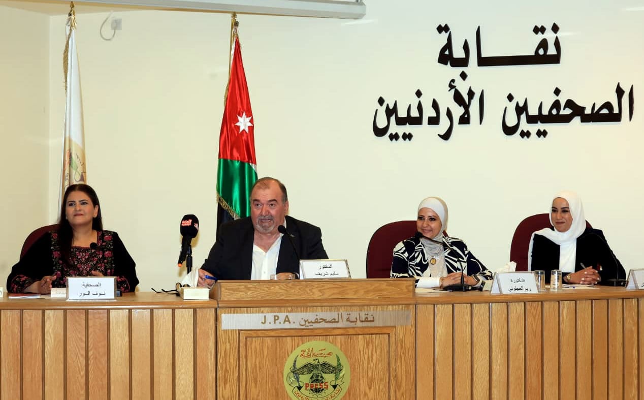 وناقش الكتاب، مديرة البرنامج الأردني لسرطان الثدي الدكتورة ريم العجلوني، ومساعد رئيس جامعة الشرق الأوسط الدكتور سليم شريف، بحضور وزير الإعلام الأسبق سميح المعايطة، والأب الدكتور نبيل حداد، وعدد من أعضاء النقابة والعابرات من المرض.