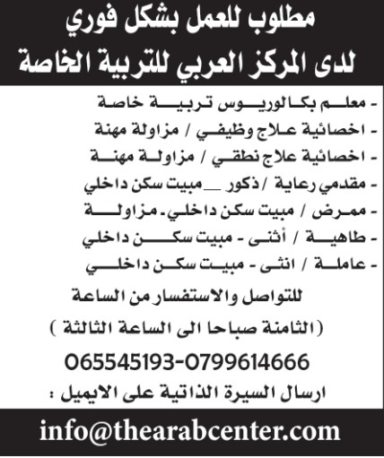 وظائف شاغرة لدى المركز العربي للتربية الخاصة