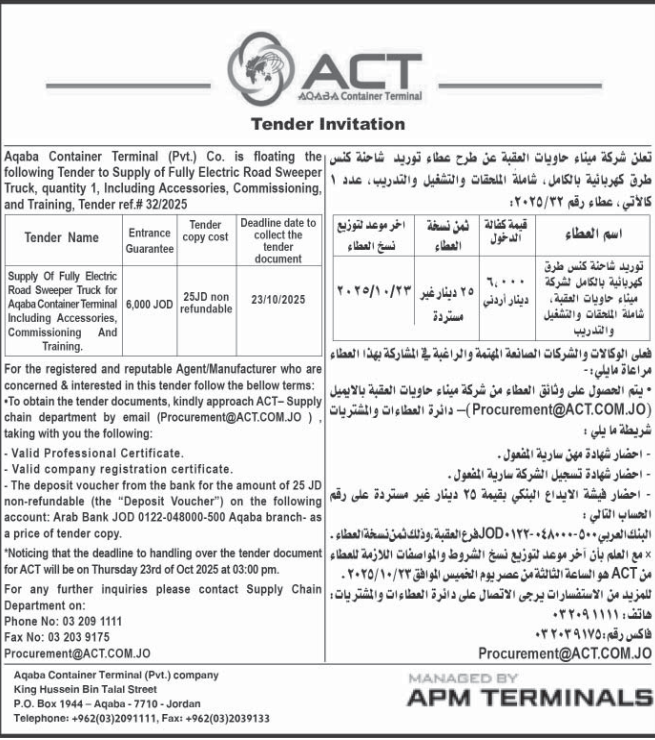 عطاء صادر عن شركة ميناء حاويات العقبة