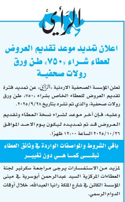 عطاء صادر عن صحيفة الرأي اليومية المحلية