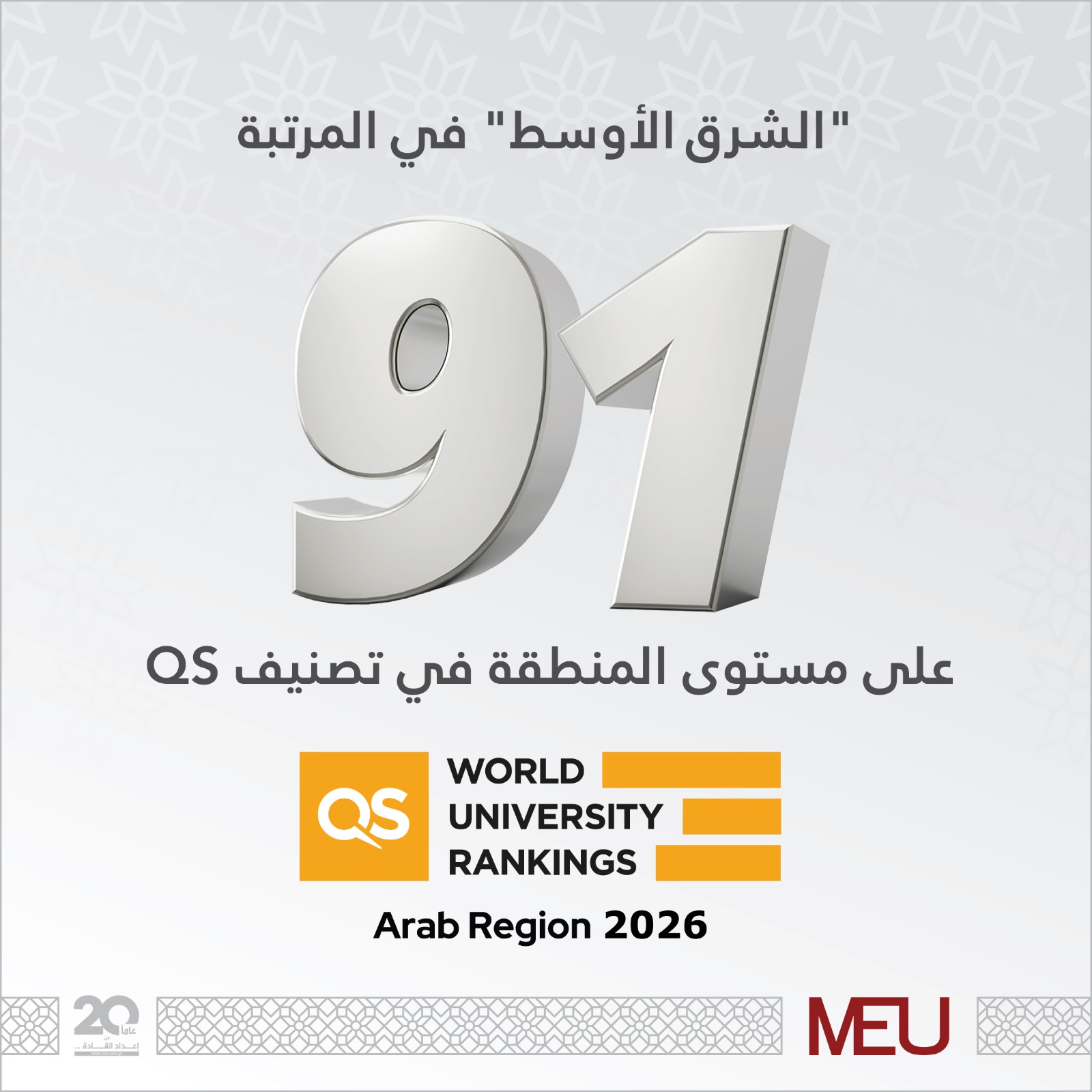عمون - حصلت جامعة الشرق الأوسط على المرتبة (91) على مستوى المنطقة في تصنيف QS لعام 2026، ما يعكس مسار التقدّم للجامعة في مجالات الانفتاح الدولي، والبحث العلمي والإنتاج الأكاديمي. |