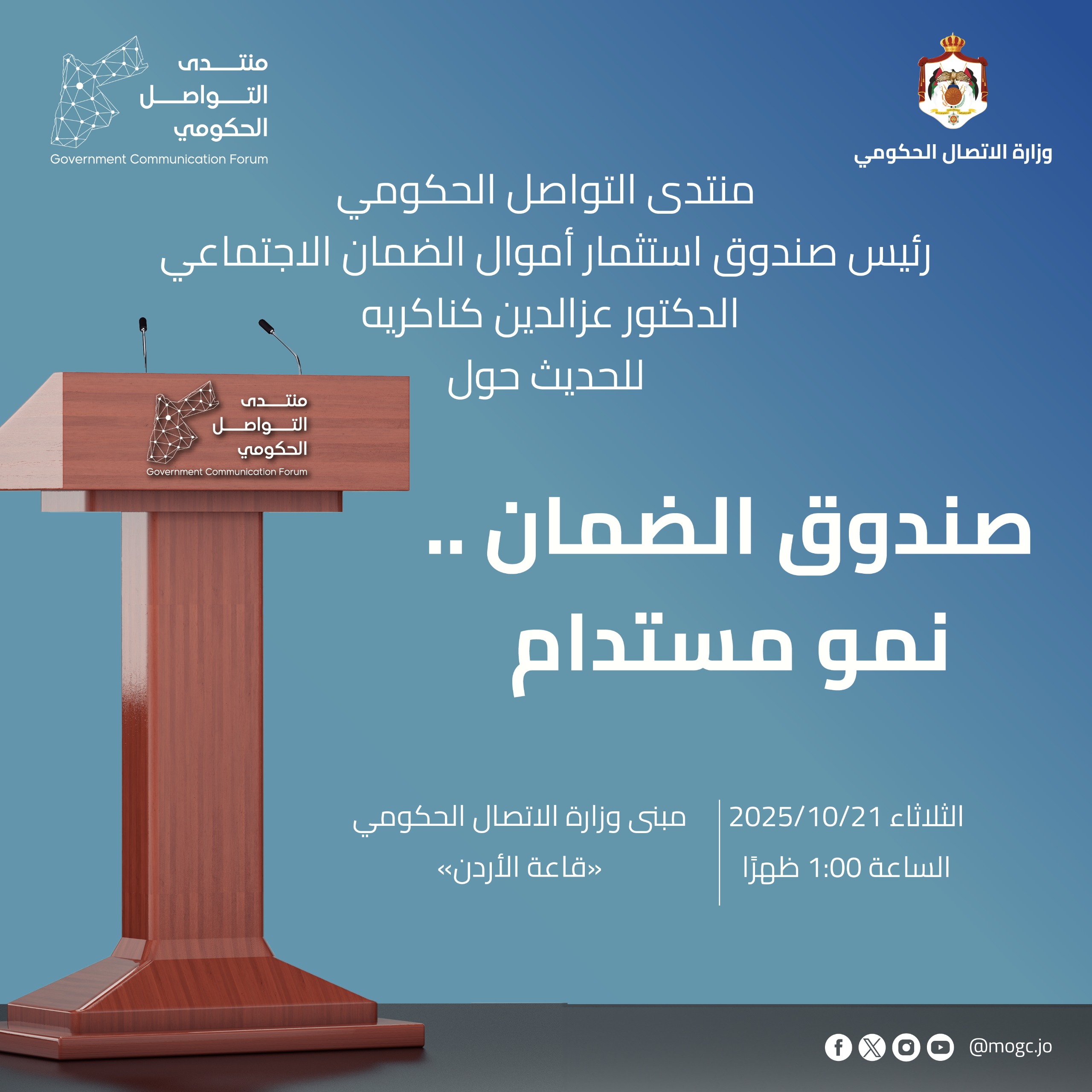 منتدى التواصل الحكومي يستضيف رئيس صندوق استثمار الضمان20-10-2025 01:03 PM