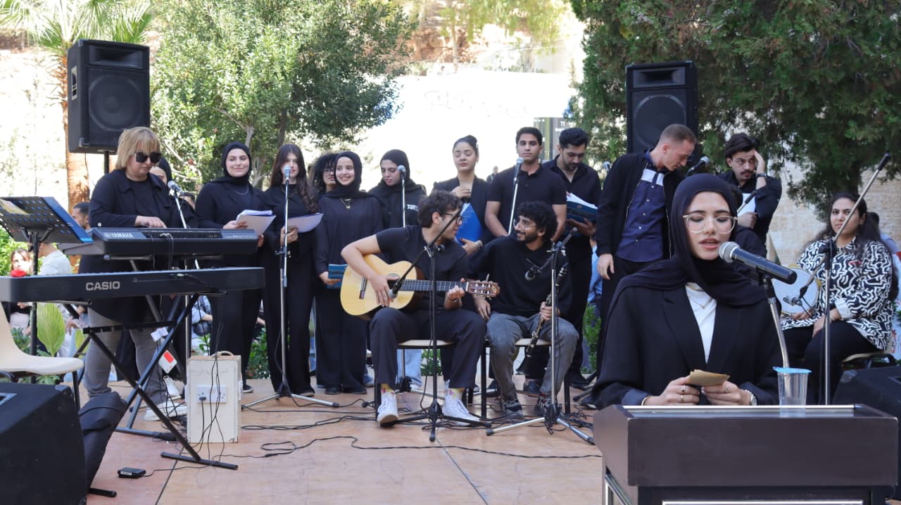 وتخلل الحفل فقرات موسيقية وغنائية قدّمها طلبة فرقة كورال الجامعة بإشراف مدربة النشاط الموسيقي رولا نصر، عكست المواهب الشابة والإبداع الفني الذي تتميز به الجامعة، حيث قدمت الفرقة مقطوعات موسيقية وأغانٍ وطنية وحماسية تفاعل معها الحضور بحماس وفرح كبير