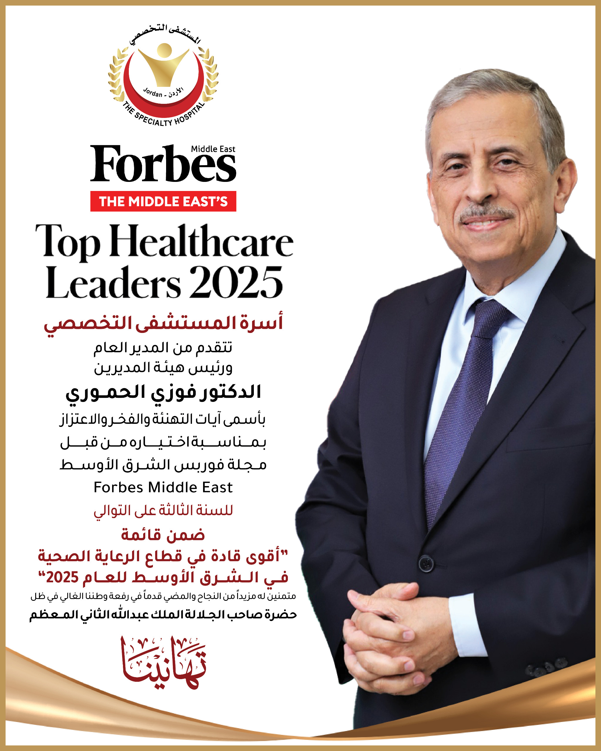 الحموري ضمن أقوى قادة الرعاية الصحية في الشرق الأوسط لعام 2025