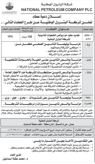 عطاءات صادرة عن شركة البترول الوطنية