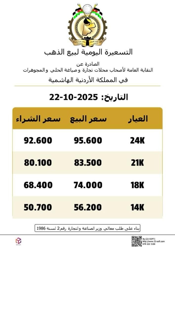 انخفاض أسعار الذهب محليًا .. وغرام 21 بـ 82.3 دينارًا22-10-2025 10:13 AM