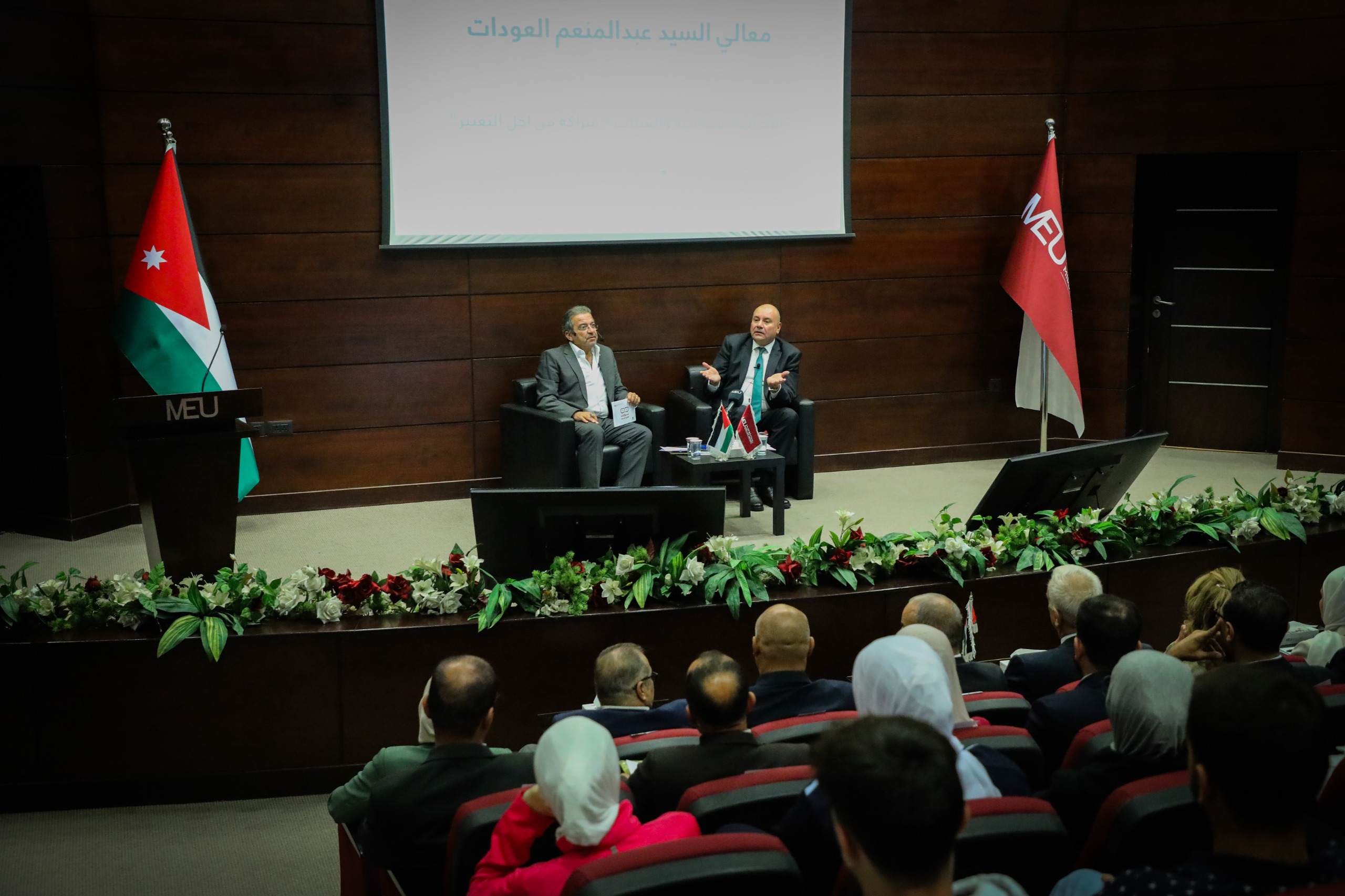 جاء ذلك خلال لقاءه عدد من طلبة جامعة الشرق الأوسط في فعالية حوارات الشرق الاوسط التي جاءت بعنوان "الأحزاب السياسية والشباب – شراكة من أجل التغيير" التي أدارها الإعلامي الأستاذ الدكتور هاني البدري، بحضور رئيس مجلس أمناء الجامعة الدكتور يعقوب ناصر الدين، ورئيسة الجامعة الأستاذة الدكتورة سلام المحادين، وعضو مجلس النواب الأستاذة الدكتورة تمارا ناصر الدين، وأعضاء الهيئتين التدريسية والإدارية في الجامعة.