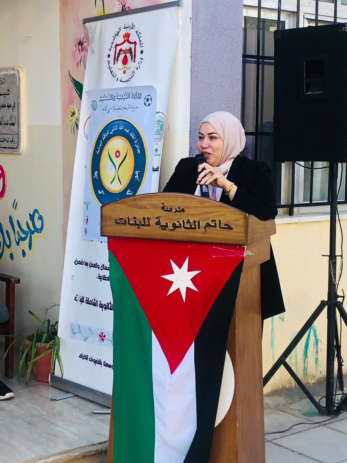 عمون - رعت مديرة التربية والتعليم للواء بني كنانة هدى الشطناوي حفل إطلاق جائزة الملك عبدالله الثاني للياقة البدنية في مدرسة حاتم الثانوية للبنات، بحضور رئبس قسم النشاطات رائد العمري.