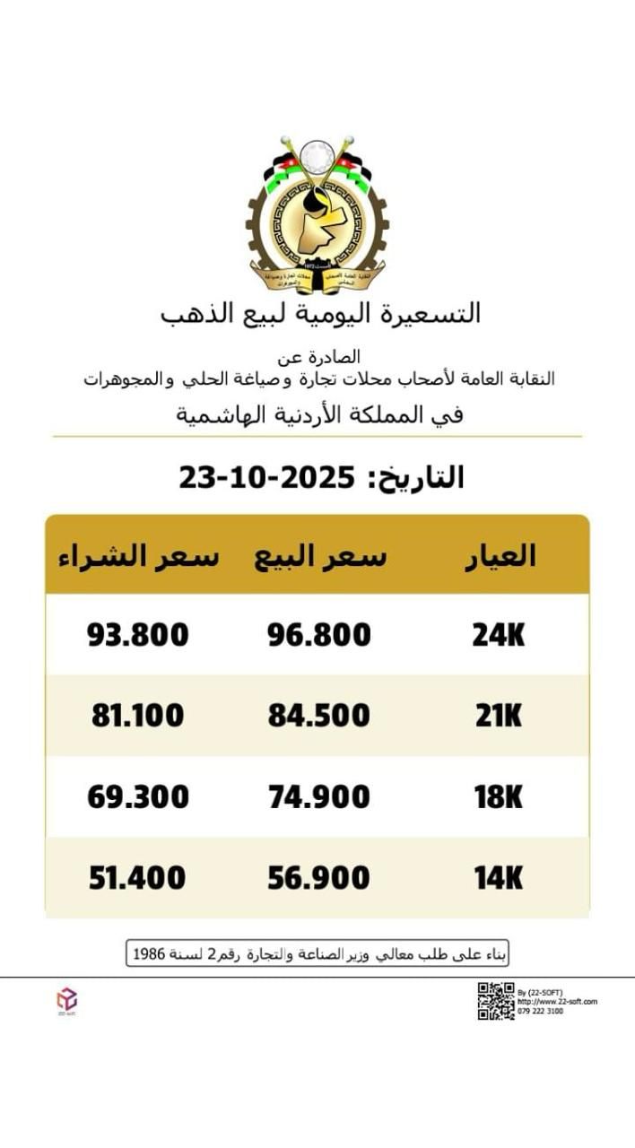 ارتفاع اسعار الذهب محليًا .. وغرام 21 بـ 84.5 دينارًا23-10-2025 06:15 PM