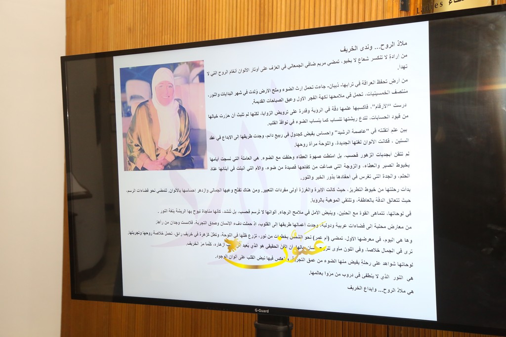 جسدّت اللوحات تجربة مريم الجمعاني (أم عمر) في رحلة إبداع وتحدّي مزجت عبرها الألوان بنبض الروح، لتعبر عن مسيرة حافلة بالعطاء والجمال والإحساس الفني الأصيل.