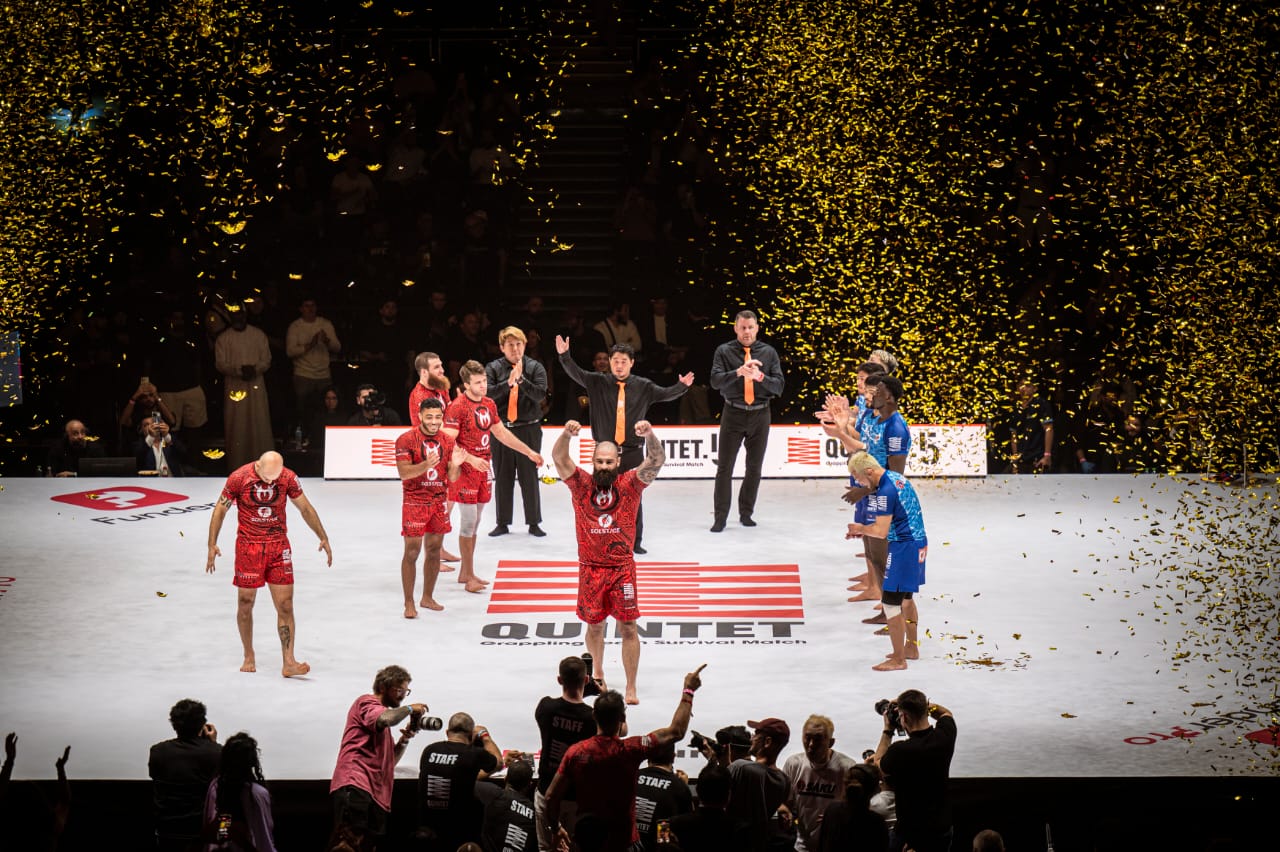 عمون - توج فريق نوجويرا دبي بلقب بطولة «كوينتيت 5» العالمية للفنون القتالية (الجرابلينج)، التي أقيمت أمس لأول مرة في الشرق الأوسط على أرض دولة الإمارات، وسط أجواء مميزة وحضور جماهيري كبير في كوكاكولا أرينا بدبي، وبمشاركة نخبة من أبرز أبطال العالم في هذه الرياضة.