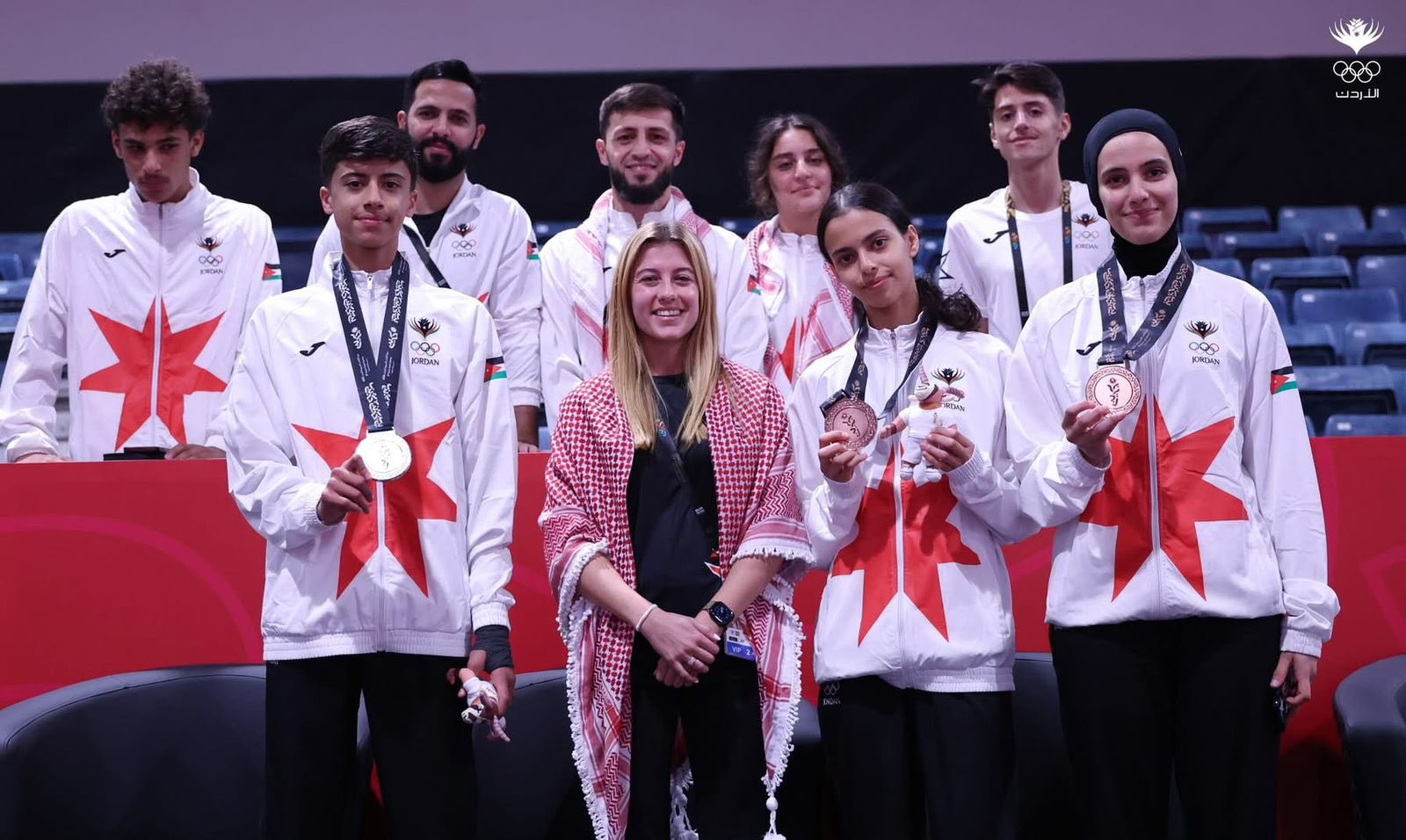 عمون - هنأت سمو الأميرة سارة بنت فيصل، رئيسة البعثة الأردنية المشاركة في دورة الألعاب الآسيوية للشباب (البحرين 2025)، لاعبي المنتخب الوطني للتايكواندو عبدالله شاهين ولمى البقور وفاطمة العبداللات، بعد أن حصلوا على ميدالية فضية وبرونزيتين. |