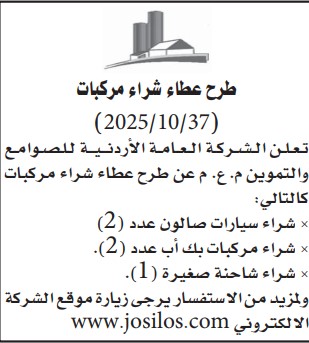 عطاءات صادرة عن الشركة العامة الاردنية للصوامع والتموين