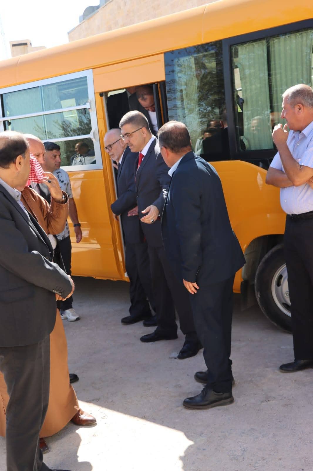 رؤساء وأعضاء مجالس الحاكمية ورئيس جامعة عجلون الوطنية يشرفون على استلام عشرة باصات حديثة تم شراؤها لخدمة الطلبة