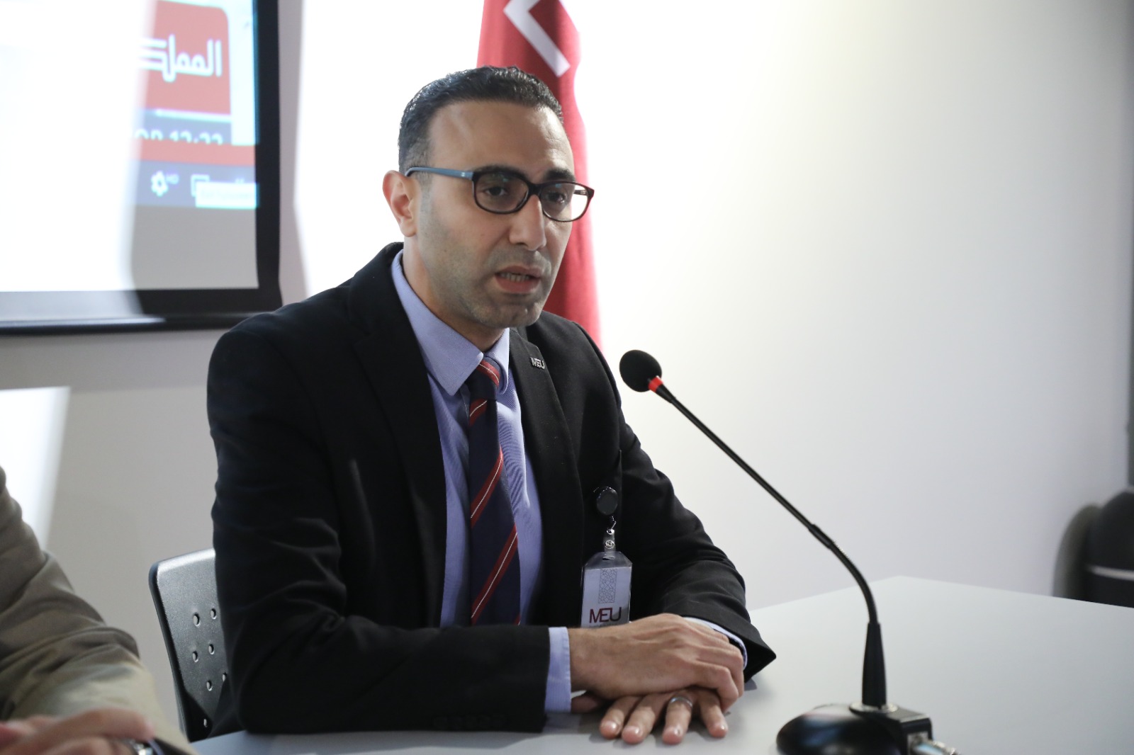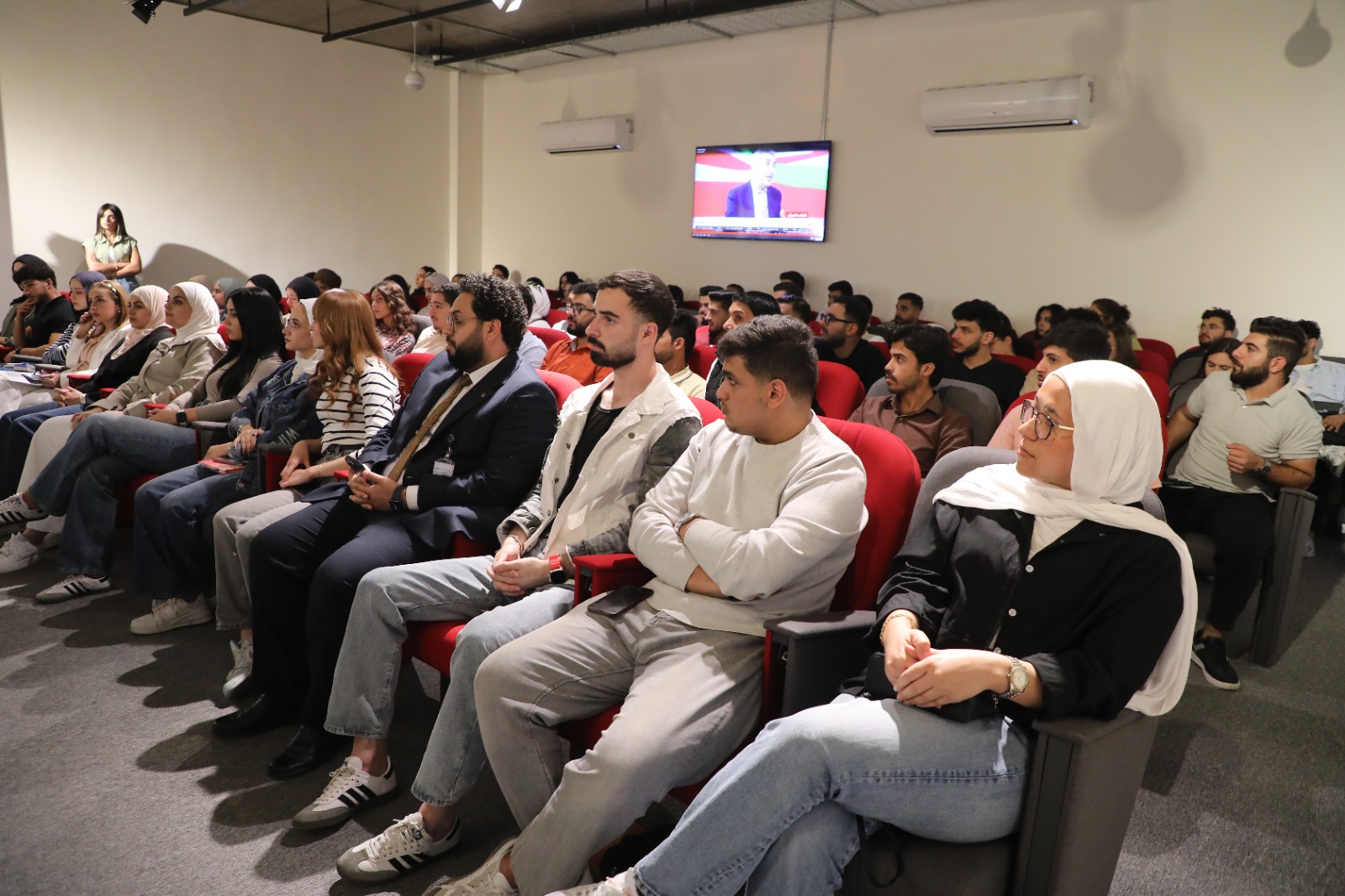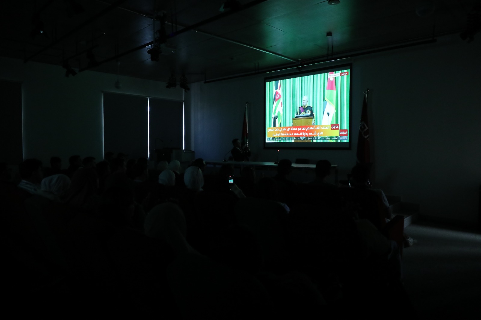 عمون - بثّت جامعة الشرق الأوسط، في مباني وكليات الجامعة كافة، خطاب العرش السامي لجلالة الملك عبدالله الثاني ابن الحسين المعظم، الذي ألقاه بمناسبة افتتاح الدورة العادية لمجلس الأمة العشرون، حيث ناقش طلبة الجامعة وأعضاء هيئتيها التدريسية والإدارية أبرز مضامين الخطاب ودلالاته الوطنية، والسياسية، والقيادية. |