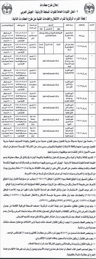 عطاءات صادرة عن القيادة العامة للقوات المسلحة
