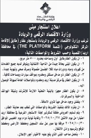 عطاء صادر عن وزارة الاقتصاد الرقمي والريادة