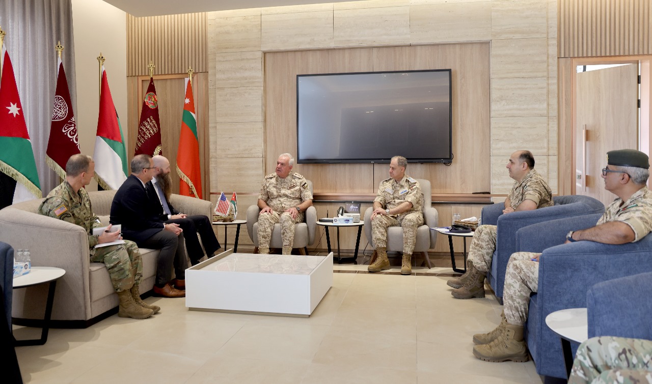 عمون - استقبل رئيس هيئة الأركان المشتركة اللواء الركن يوسف أحمد الحنيطي، اليوم الاثنين، في مكتبه بالقيادة العامة، القائم بأعمال نائب وزير الحرب للعمليات الخاصة والصراعات الأمريكية كولبي جنكينز والوفد المرافق له.