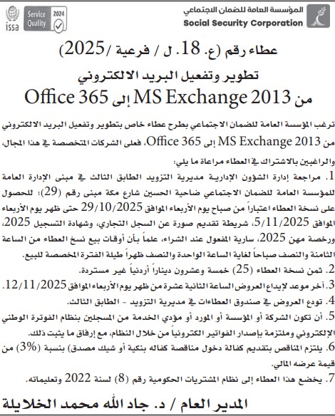 عطاء صادر عن المؤسسة العامة للضمان الاجتماعي