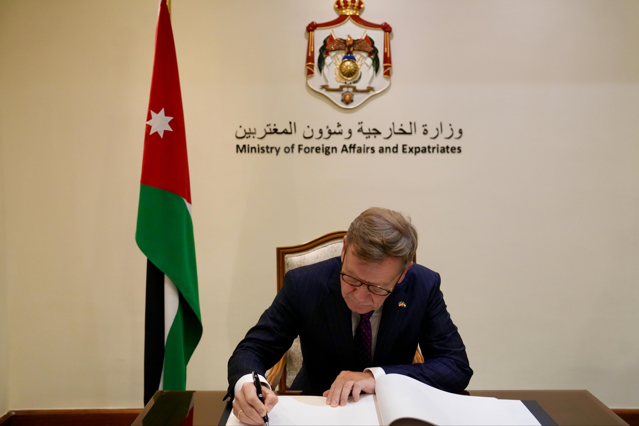 وبحث الصفدي ونظيره الألماني الجهود المبذولة للحفاظ على وقف إطلاق النار في غزة وأكّدا ضرورة التزامه والتقدّم ضمن رؤية شاملة تضمن الأمن والاستقرار وإعادة البناء في غزة وإيجاد أفق سياسي حقيقي لتحقيق السلام العادل والشامل على أساس حل الدولتين.