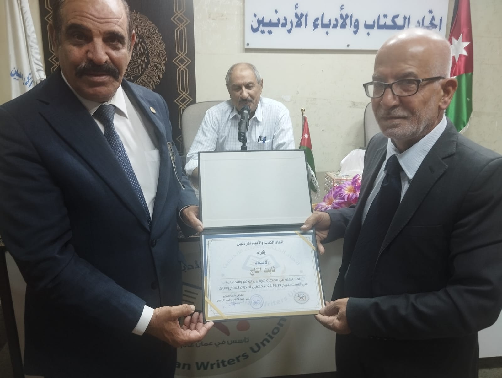 ثابت التاج يلقي محاضرة في اتحاد الكتاب الأردنيين حول "غزة: الواقع والتحديات"
