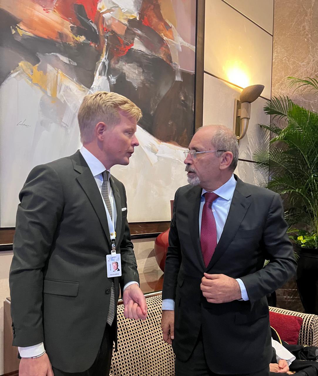 عمون - أجرى نائب رئيس الوزراء ووزير الخارجية وشؤون المغتربين أيمن الصفدي الجمعة، مباحثات موسّعة مع وزير الخارجية البحريني الدكتور عبد اللطيف بن راشد الزياني تناولت سبل تعزيز العلاقات الأخوية التاريخية بين المملكتين الشقيقتين والأوضاع في المنطقة. |